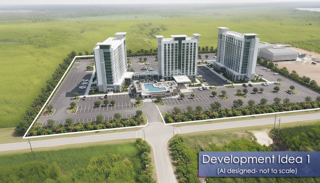 The property has 607 feet of frontage along George Price Highway, and according to Google Earth, it is 14 feet above sea level. However, the land is part of the wetlands and will require filling. Since the land is low-lying, it is recommended to incorporate a man-made pond and drainage system into the development plan. After all, water features do add value to the property and aesthetic appeal.